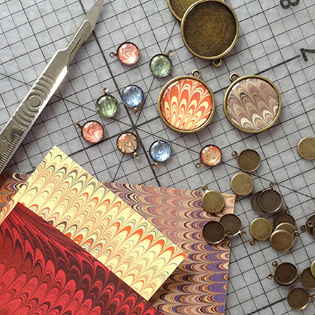 Turkish marbling or ebru is a monotype printing process in which each paper created is truly one of a kind. It can be an unpredictable process but when all the various components come together it’s a satisfying one!